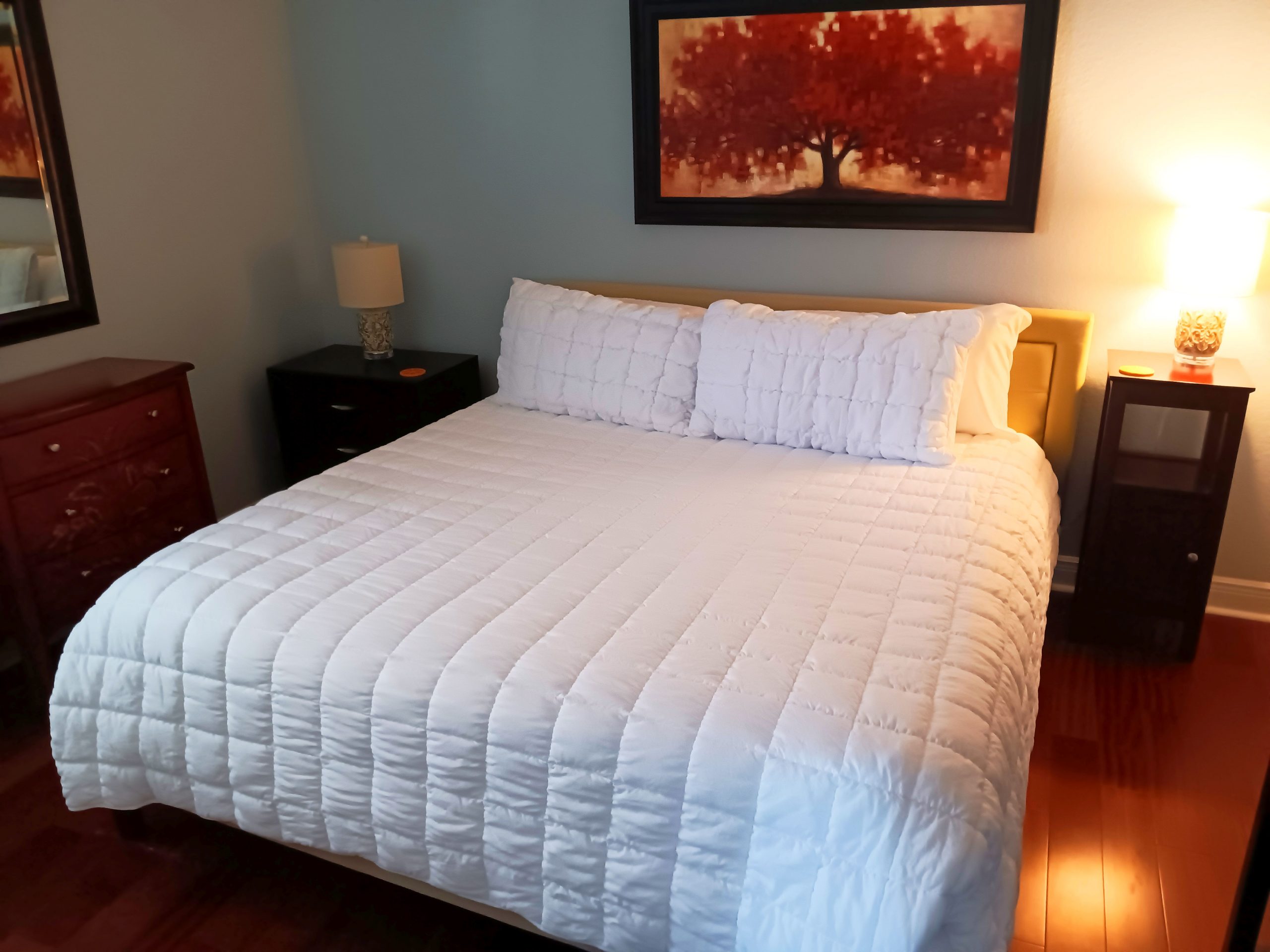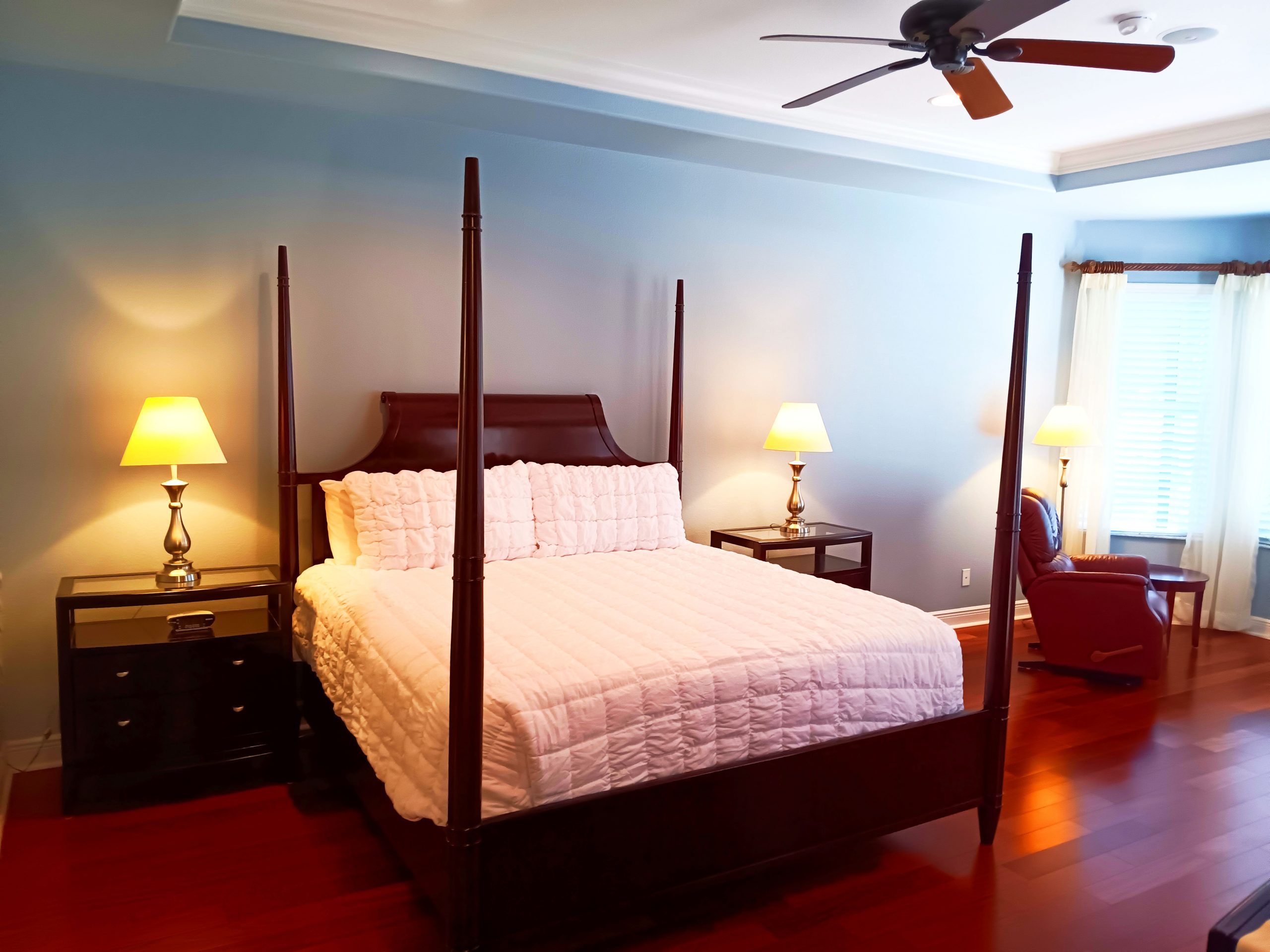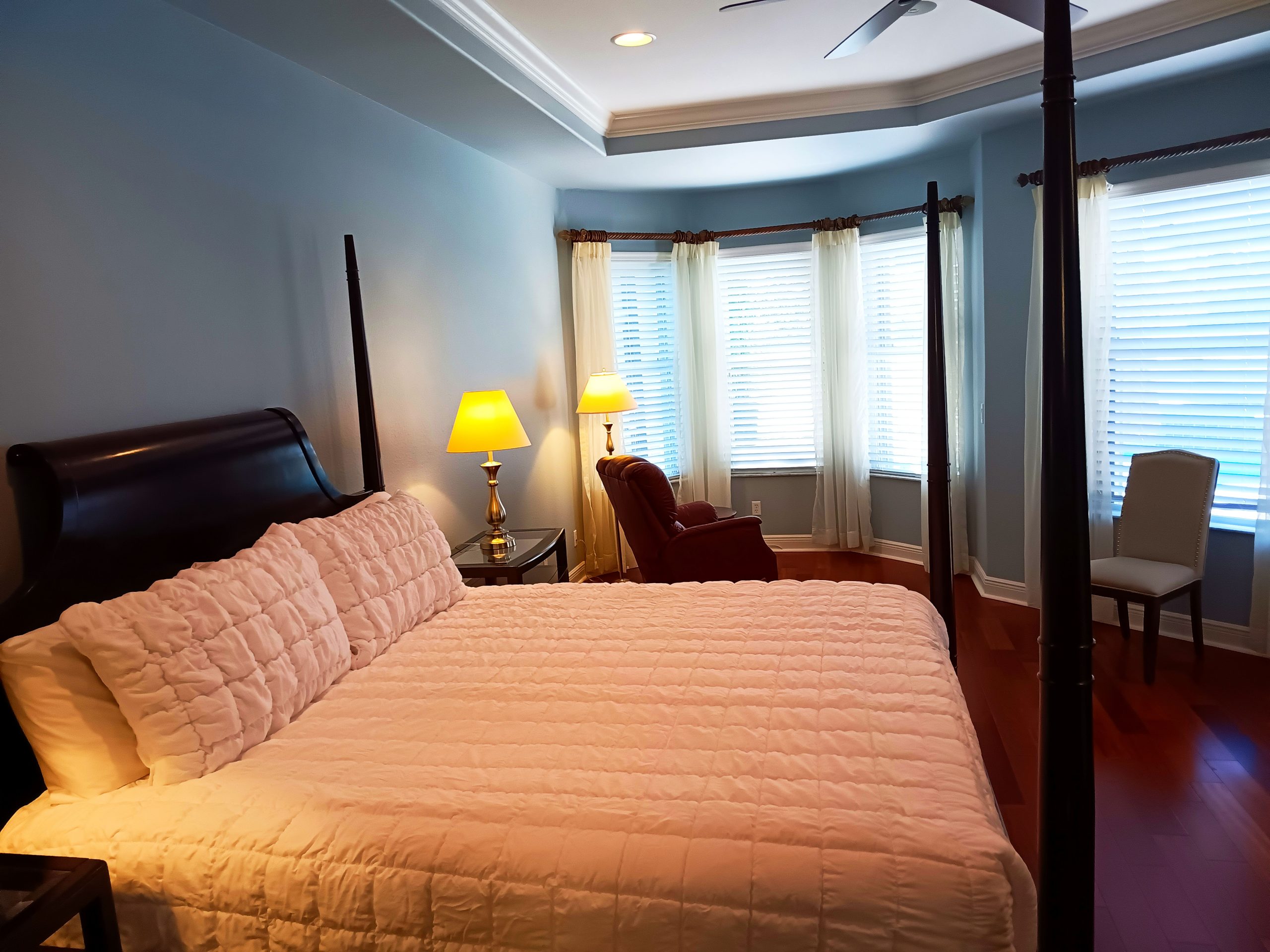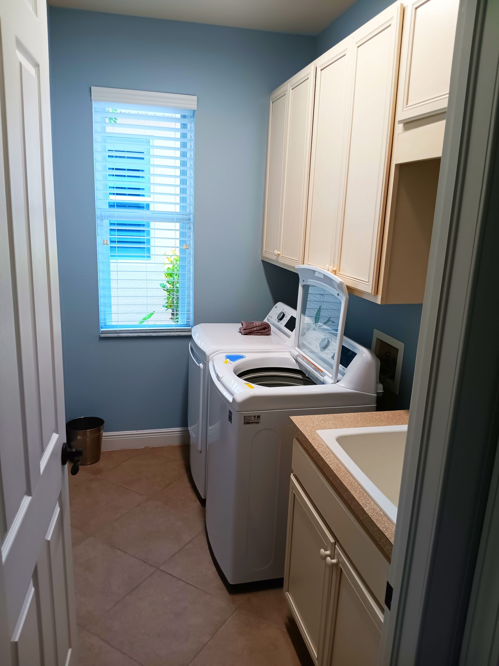 The huge screened-in patio is the highlight of the villa—complete with a private pool and spa, perfect for soaking up the Florida sunshine or unwinding under the stars. Surrounded by lush landscaping and tranquility, it’s the ultimate space to relax and recharge.